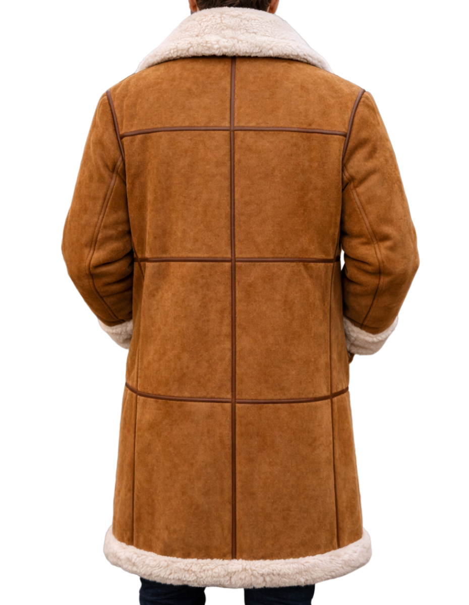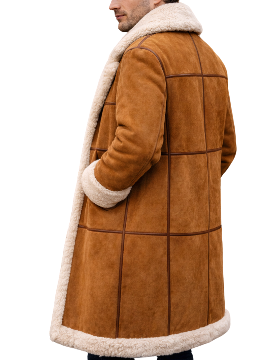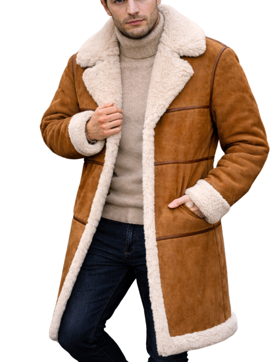 Men Suede Shearling Coat – Warm Faux Fur Lined